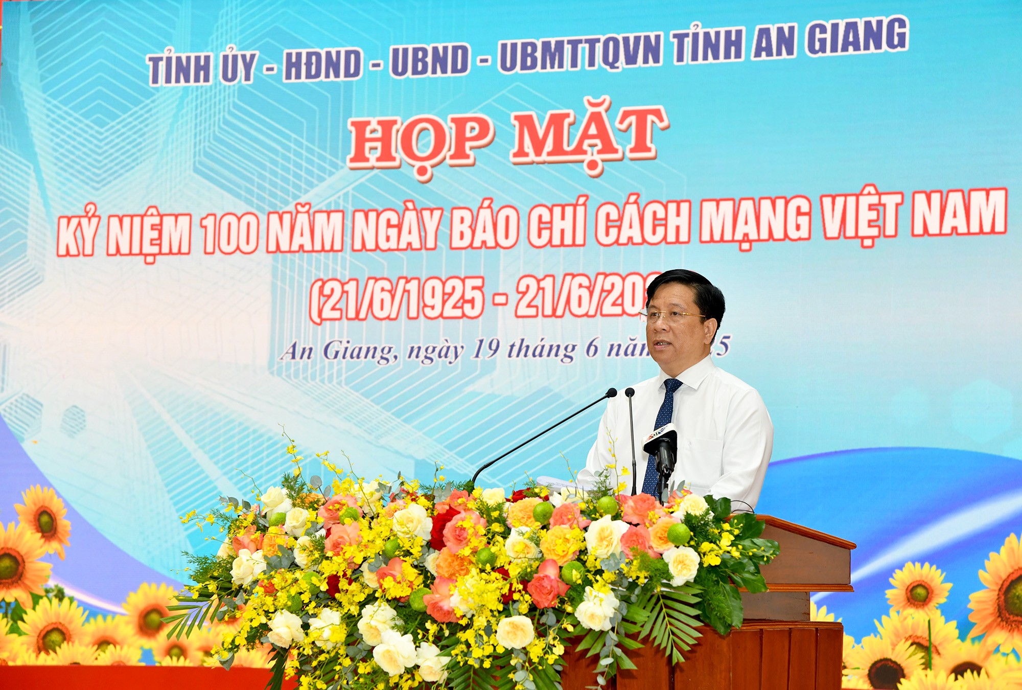 Phát biểu tại sự kiện, ông Hồ Văn Mừng đánh giá cao vai trò định hướng dư luận, xây dựng niềm tin trong nhân dân của báo chí. Không chỉ dừng lại ở truyền thống, báo chí An Giang đã nhanh chóng bắt nhịp với xu hướng đa phương tiện, chuyển đổi số, trở thành cầu nối hiệu quả giữa chính quyền và người dân.