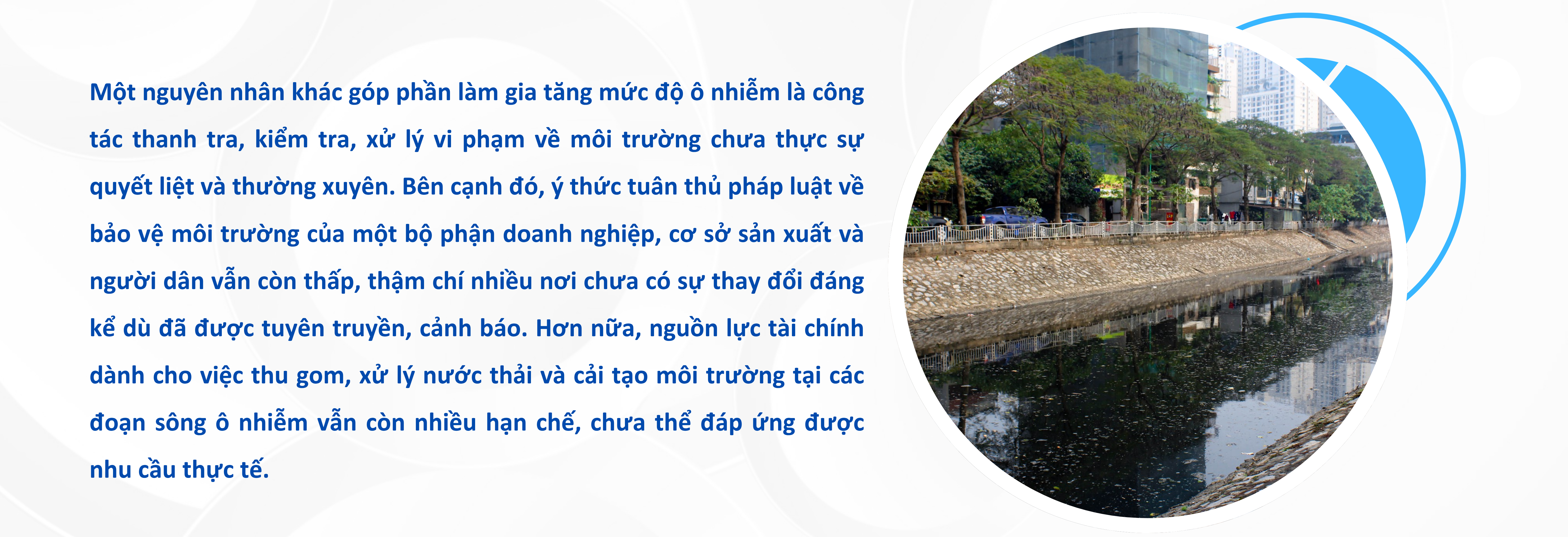 Nhiều năm qua, Hà Nội đã có những bước tiến trong công tác bảo vệ môi trường. Các chính sách pháp luật ngày càng hoàn thiện, hệ thống quan trắc được củng cố và mở rộng, công tác quản lý, kiểm soát chất lượng môi trường cũng từng bước được nâng cao. Tuy nhiên, trên thực tế, những chuyển biến tích cực này vẫn chưa thể theo kịp với tốc độ phát triển kinh tế - xã hội nhanh chóng của Thủ đô. Môi trường nước tại nhiều con sông trọng điểm vẫn tiếp tục bị đe dọa bởi tình trạng ô nhiễm kéo dài và chưa có dấu hiệu cải thiện rõ rệt.