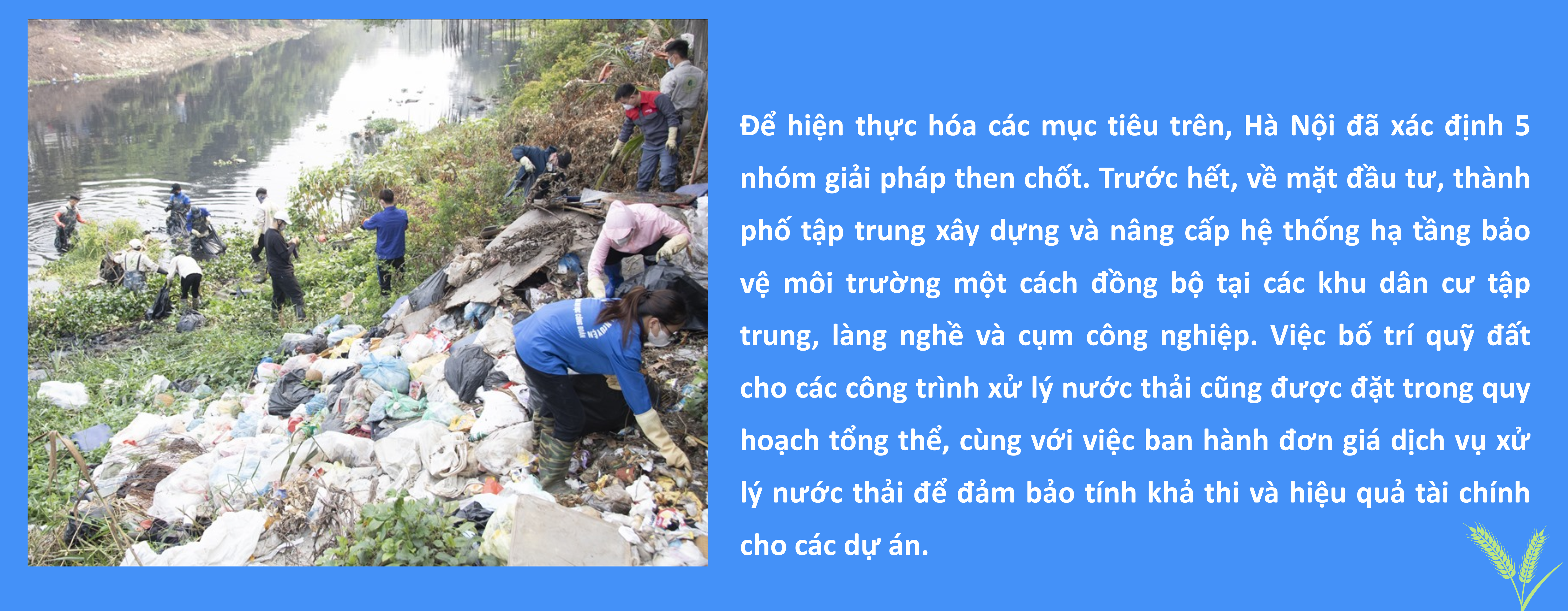 Song song với đó, thành phố đặt mục tiêu huy động tối đa các nguồn lực đầu tư để đẩy nhanh tiến độ xây dựng các công trình thu gom, xử lý nước thải tập trung, nhất là nước thải sinh hoạt từ các khu vực đông dân cư. Đặc biệt, các khu vực dân cư phân tán, vốn là những nơi khó kiểm soát về nguồn thải sẽ được xem xét áp dụng các chính sách hỗ trợ riêng biệt, tạo điều kiện thuận lợi cho việc thu gom và xử lý nước thải tại chỗ.