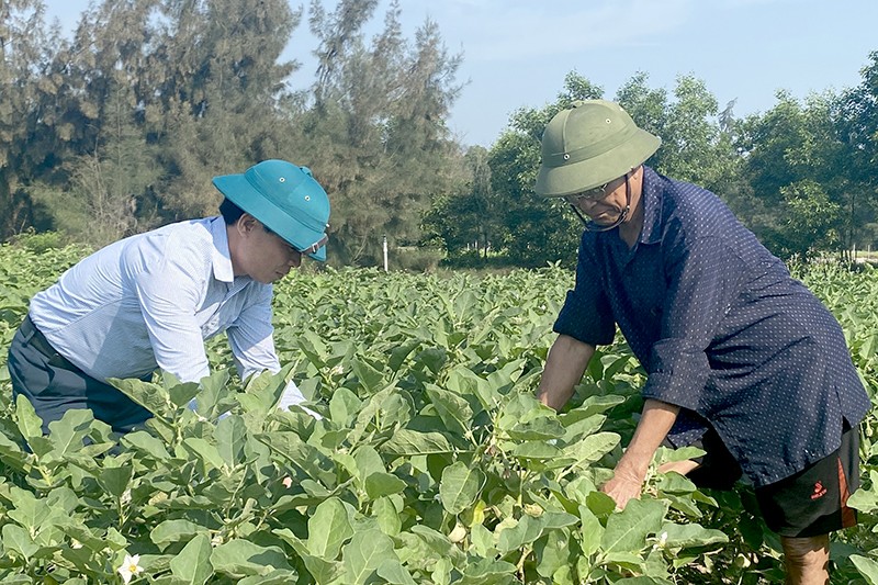 Bà Thu cho hay: Trước đây đất này bị hoang hóa, cỏ mọc um tùm, đất toàn cát không thể trồng được cây gì cả. Từ khi có chính sách hỗ trợ của nhà nước vùng đất này được cải tạo, áp dụng tiến bộ khoa học kỹ thuật, hệ thống tưới tiêu và một số hạng mục khác như trồng cây xanh, từ đó người dân bắt đầu bắt tay vào sản xuất. Như gia đình chúng tôi, nếu trước kia một năm chỉ sản xuất vài vụ thì bây giờ các loại rau, củ, quả trên cát gần như được trồng quanh năm, đảm bảo sản phẩm sạch, đạt hiệu quả kinh tế cao hơn gấp nhiều lần so với trồng lúa.