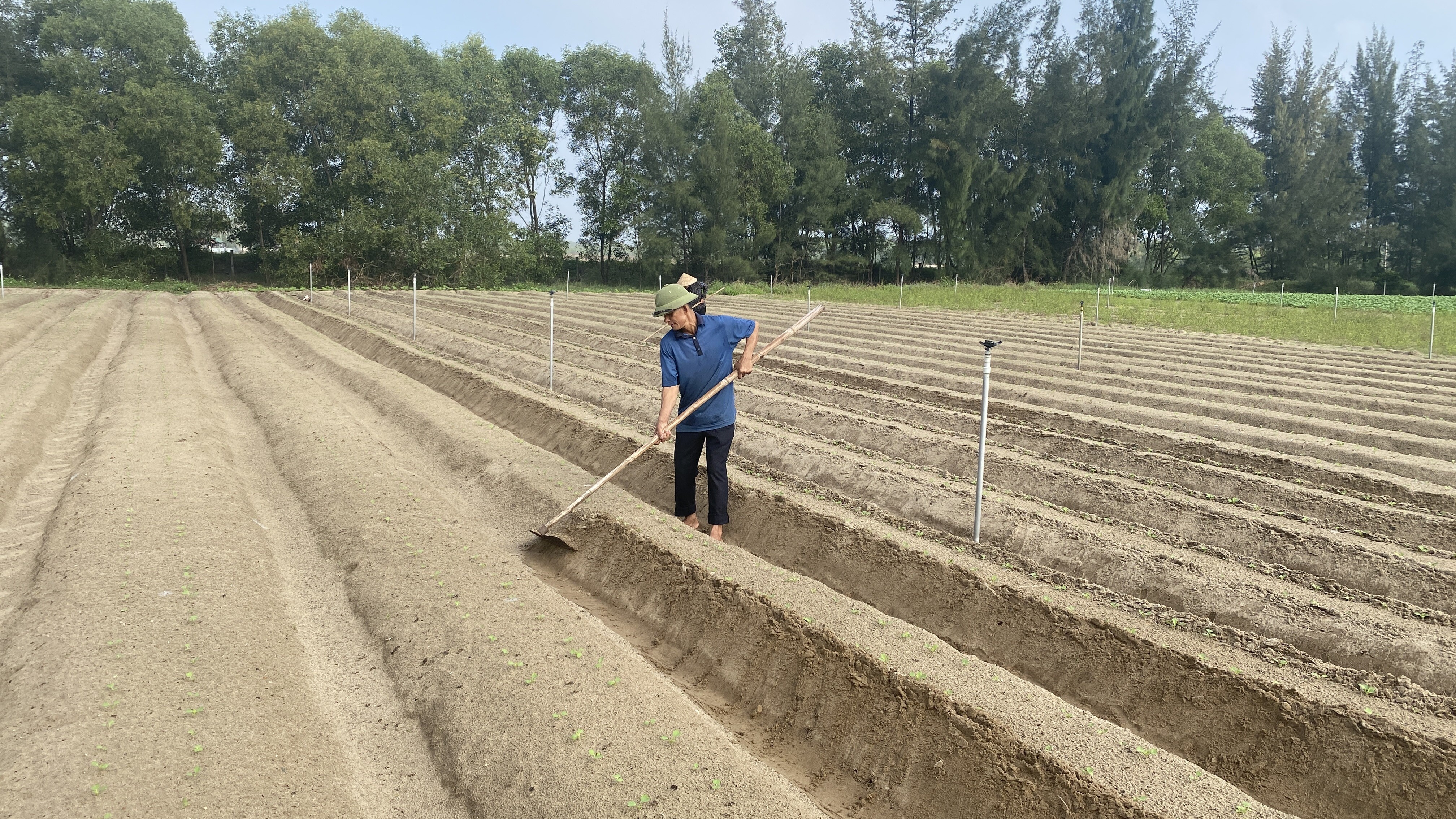 Người dân nơi đây cho biết, để có thể canh tác được trên vùng đất cát bạc màu này, điều đầu tiên phải trồng cây phi lao hoặc cây keo, mục đích là che chắn hiện tượng cát bay và chắn gió biển. Tiếp đó là bón hàng tấn phân chuồng cho cải tạo đất rồi đào giếng ngầm để chủ động nguồn nước tưới.