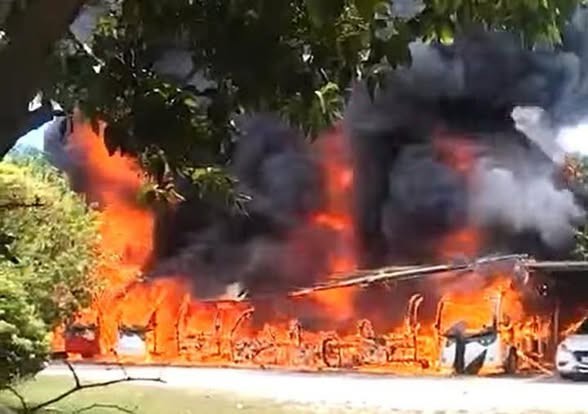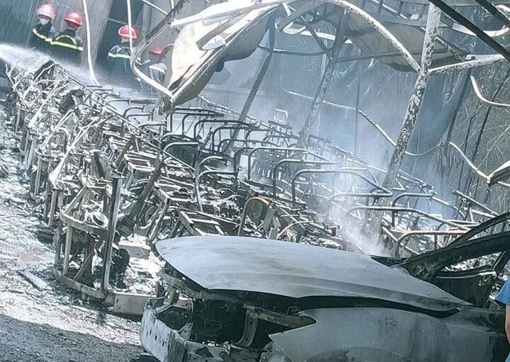 Đám cháy sau đó lan rộng làm 9 xe điện du lịch và 1 ô tô nhãn hiệu Mazda của nhân viên đang đậu tại khu vực nhà để xe bị cháy rụi.