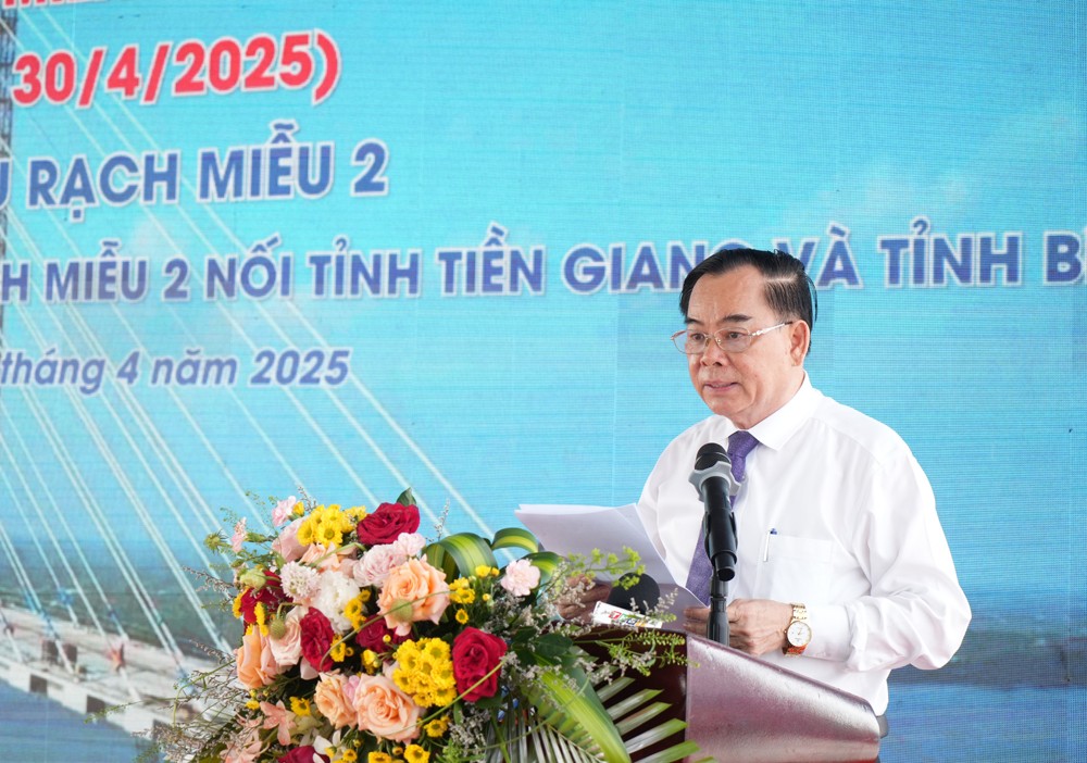 Chủ tịch UBND tỉnh Bến Tre Trần Ngọc Tam nhấn mạnh, Rạch Miễu 2 là một trong những cầu dây văng lớn nhất Đồng bằng sông Cửu Long, giữ vai trò then chốt trong kết nối hạ tầng vùng Tây Nam Bộ. Công trình không chỉ mang ý nghĩa giao thông trọng điểm, mà còn là động lực quan trọng thúc đẩy phát triển kinh tế - xã hội cho địa phương và khu vực.