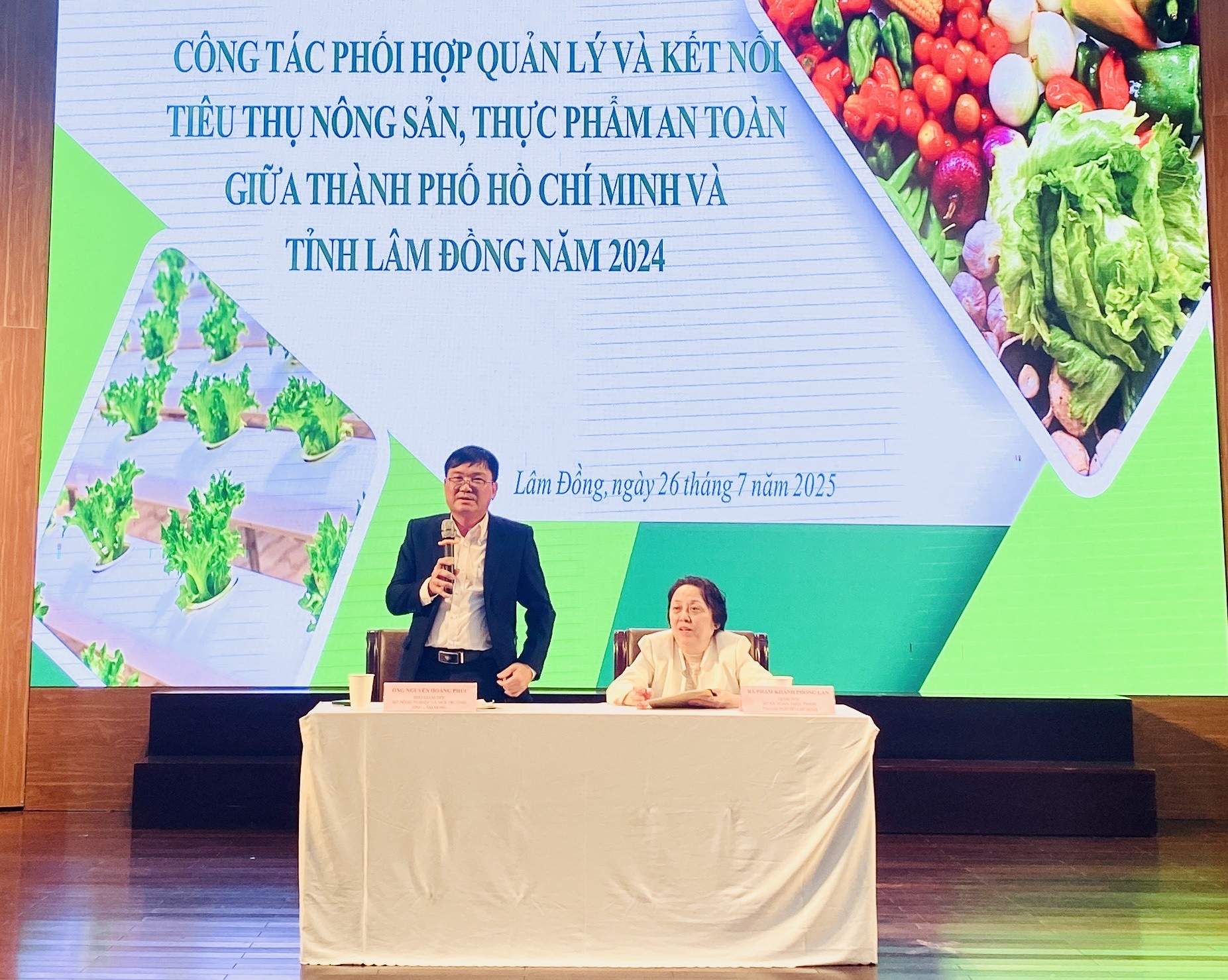 Phát biểu tại hội nghị, ông Nguyễn Hoàng Phúc, Phó Giám đốc Sở Nông nghiệp và Phát triển nông thôn tỉnh Lâm Đồng nhấn mạnh: “Chúng tôi xác định rõ, Lâm Đồng không chỉ là ‘vựa nông sản’ của khu vực Tây Nguyên, mà còn là vùng nguyên liệu chiến lược, đầu mối sản xuất thực phẩm sạch cho TP.HCM và vùng Đông Nam Bộ. Với lợi thế khí hậu ôn hòa quanh năm, cùng hệ thống sản xuất tập trung, kiểm soát chất lượng chặt chẽ và hạ tầng logistics đang từng bước hoàn thiện, chúng tôi đủ khả năng mở rộng chuỗi giá trị, cung cấp các loại nông sản có truy xuất nguồn gốc rõ ràng, đáp ứng tiêu chuẩn VietGAP, GlobalGAP, hữu cơ, và nhiều tiêu chuẩn quốc tế khác.”