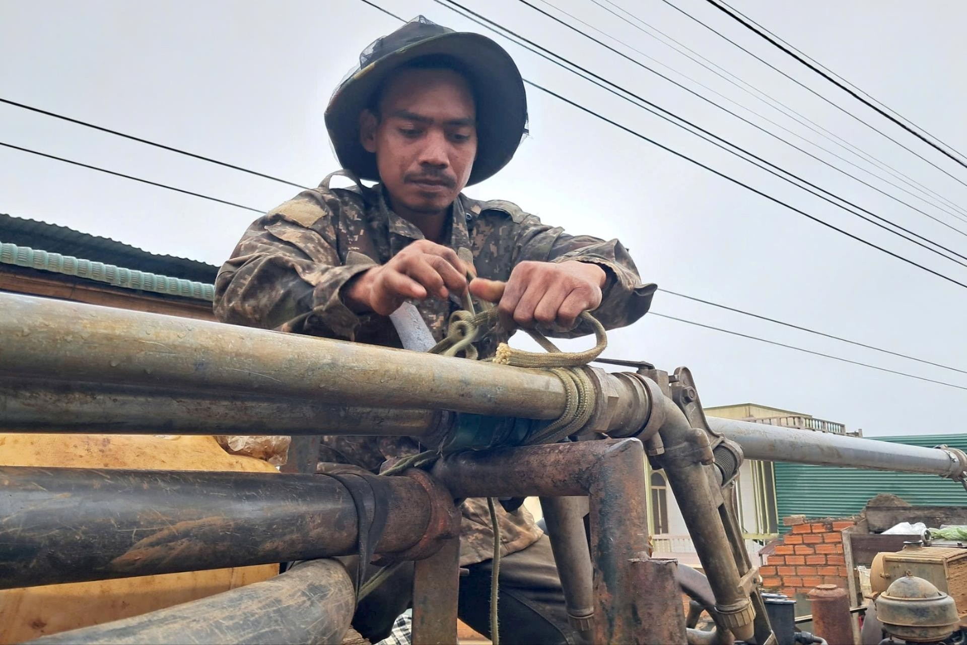 Trong những ngày này, vợ chồng anh Ma Thông ở bon Sar Pa, xã Thuận An (huyện Đắk Mil) lúc nào cũng tất bật với việc tìm nước chống hạn. Anh liên tục chạy ngược chạy xuôi ra rẫy, chuẩn bị vòi rồng, béc tưới, mua dầu để chạy máy bơm tưới nước cho vườn cà phê.