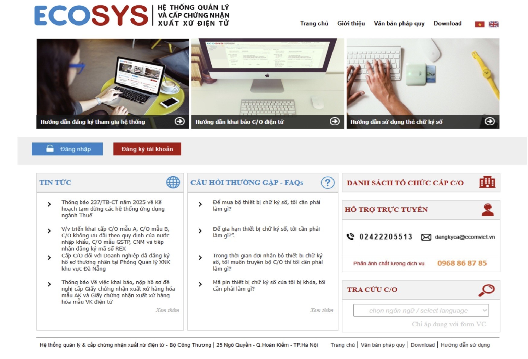 Một điểm nổi bật trong Thông tư là việc triển khai bắt buộc toàn bộ quy trình cấp C/O và văn bản chấp thuận thông qua Hệ thống eCoSys, với sự quản lý hạ tầng kỹ thuật bởi Trung tâm Phát triển thương mại điện tử và Công nghệ số (eComDX), Cục Thương mại điện tử và Kinh tế số. Hệ thống này thực hiện các chức năng như tạo tài khoản, cấp mã số đơn vị có thẩm quyền, công khai danh sách tổ chức được phép cấp C/O và đảm bảo kết nối dữ liệu với Cổng thông tin một cửa quốc gia. eCoSys đóng vai trò trung tâm trong việc chuẩn hóa, số hóa và liên thông toàn bộ dữ liệu xuất xứ hàng hóa, góp phần nâng cao hiệu quả quản lý và tạo thuận lợi cho hoạt động xuất khẩu.