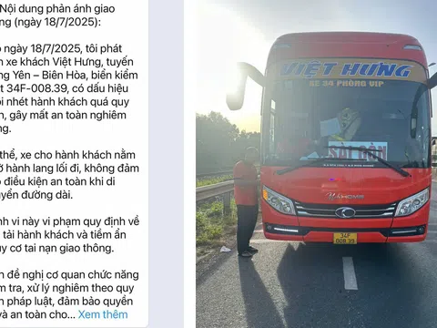 Ngày 18/7, số điện thoại tiếp nhận thông tin TTATGT của Cục trưởng cục CSGT Đỗ Thanh Bình nhận được tin nhắn phản ánh về việc xe khách Việt Hưng có dấu hiệu vi phạm Luật Trật tự, An toàn giao thông đường bộ. Ngay lập tức lực lượng CSGT đã vào cuộc xác minh và xử lý vi phạm.
