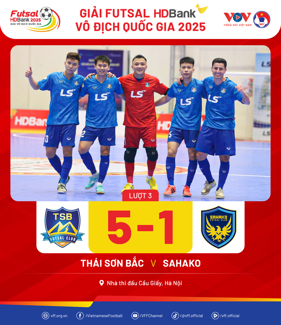 Bước sang Hiệp 2, mặc dù có nhiều cố gắng, thi đấu nỗ lực, quyết tâm nhưng các cầu thủ Sahako không thể thay đổi được cục diện trận đấu. Lần lượt Quang Nguyên rồi Minh Quang ghi bàn cho Thái Sơn Bắc để ấn định chiến thắng thuyết phục 5-1 trước câu lạc bộ futsal Sahako.