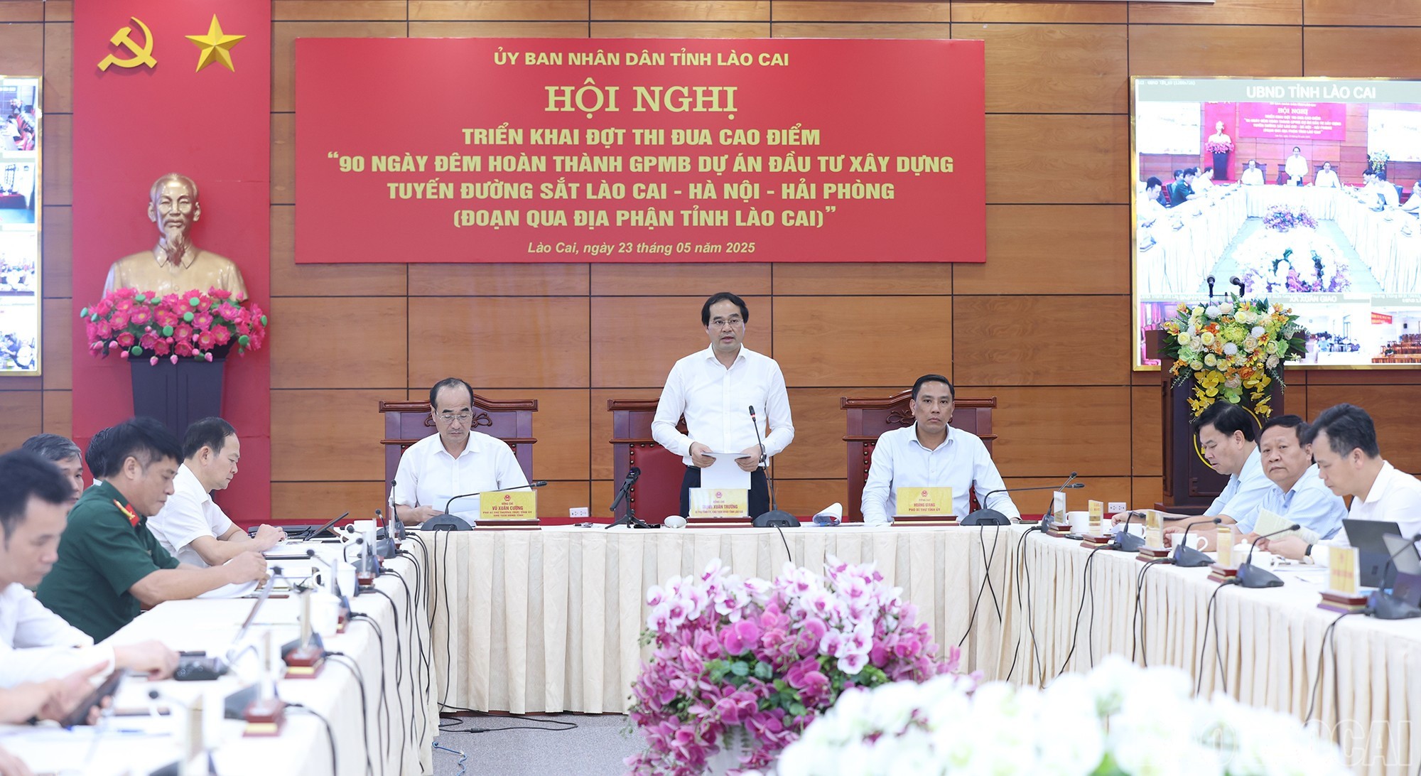 Hội nghị triển khai đợt thi đua cao điểm 90 ngày đêm hoàn thành giải phóng mặt bằng Dự án đầu tư xây dựng tuyến đường sắt Lào Cai - Hà Nội - Hải Phòng được UBND tỉnh Lào Cai tổ chức vào chiều ngày 23/5 vừa qua.