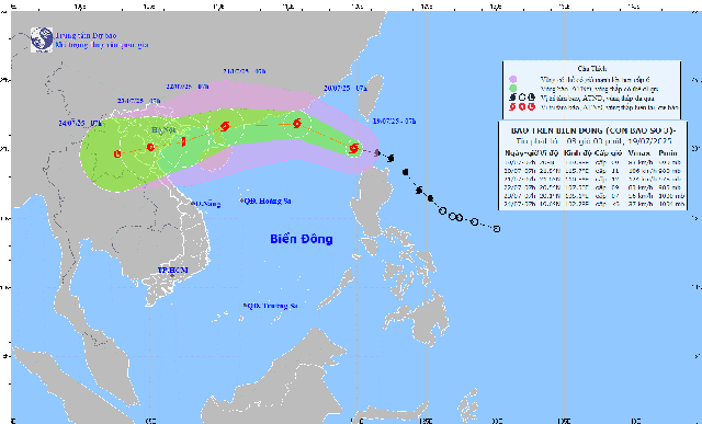 Sáng ngày 19 /7/2025, cơn bão có tên quốc tế là WIPHA đã đi vào biển Đông trở thành cơn bão số 3 trong năm 2025, cường độ đã đạt cấp 10, giật cấp 12. Theo dự báo của Trung tâm Dự báo Khí tượng thủy văn quốc gia, bão còn tiếp tục mạnh lên (sức gió mạnh nhất trên biển có thể đạt cấp 12, giật cấp 15), từ ngày 21-22 /7, vùng ven biển từ Quảng Ninh đến Thanh Hóa sẽ chịu ảnh hưởng trực tiếp của bão, gây gió mạnh, mưa lớn cho các tỉnh Bắc Bộ và các tỉnh Bắc Trung Bộ (Thanh Hóa, Nghệ An, Hà Tĩnh).