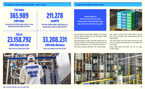 Năm 2024, Vinamilk tiếp tục duy trì 03 đơn vị đạt trung hòa carbon, bao gồm hai nhà máy và một trang trại; tỷ lệ năng lượng xanh thay thế gần 89% năng lượng hóa thạch trong sản xuất; duy trì việc đo đếm khí nhà kính theo chuẩn ISO 14064 cho tất cả các nhà máy trên cả nước. Đây là một số kết quả điển hình cho sự tích hợp hiệu quả giữa sản xuất, năng lượng và công nghệ – một bài học lớn mà Vinamilk đã đúc kết trong hành trình “xanh hóa” của mình và giúp họ tự tin hơn với cam kết Net Zero vào 2050.