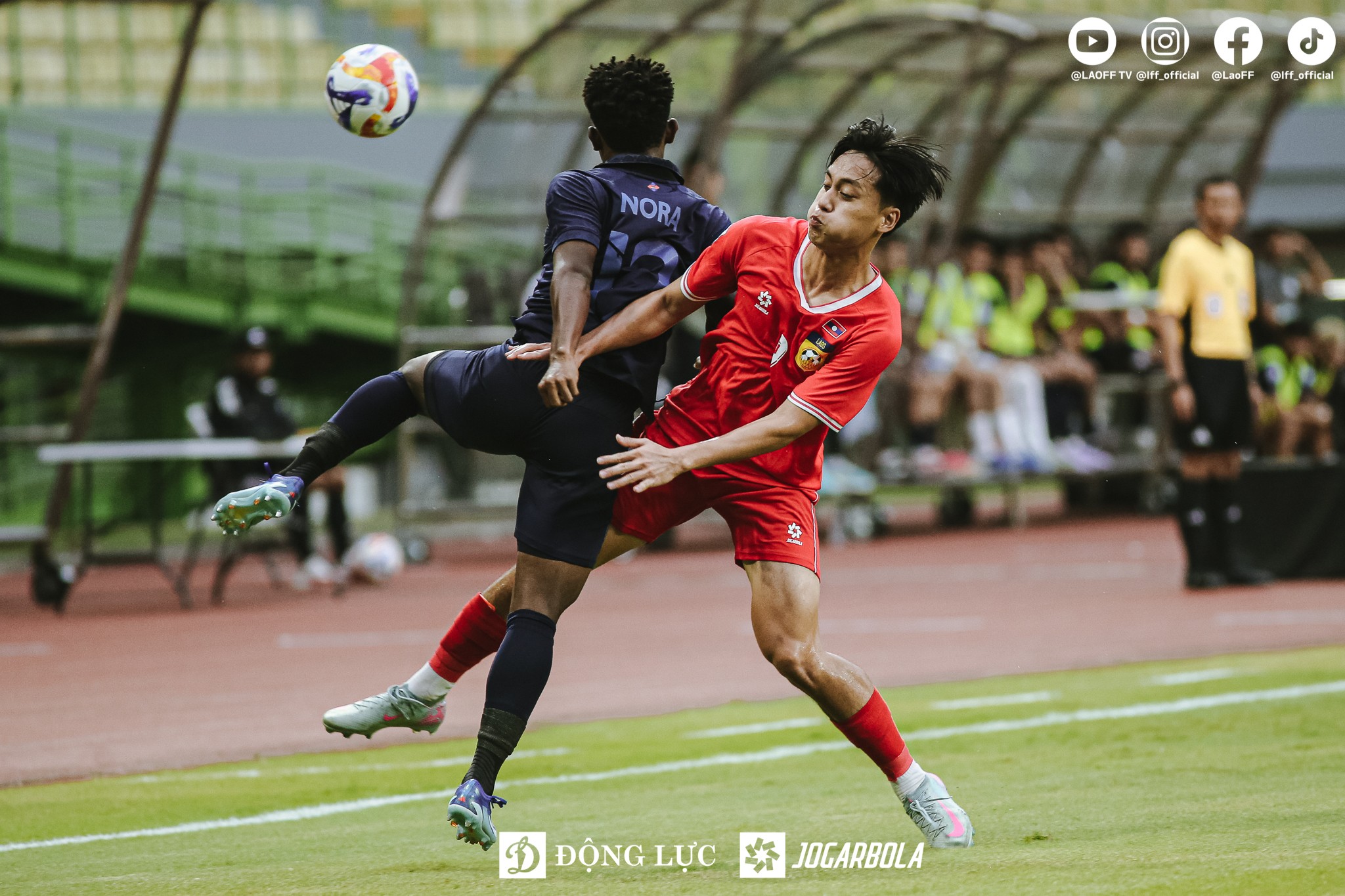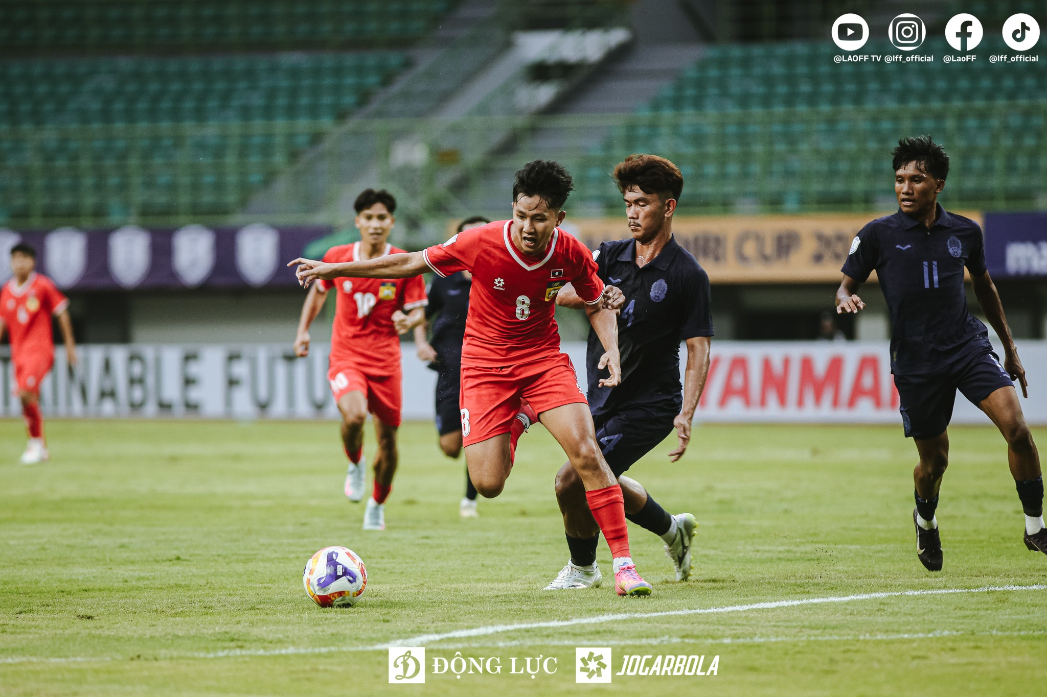 U23 Lào chơi áp sát, pressing toàn sân, tranh cướp bóng quyết liệt, không ngại va chạm và cũng có những tình huống nguy hiểm về phía khung thành U23 Campuchia.