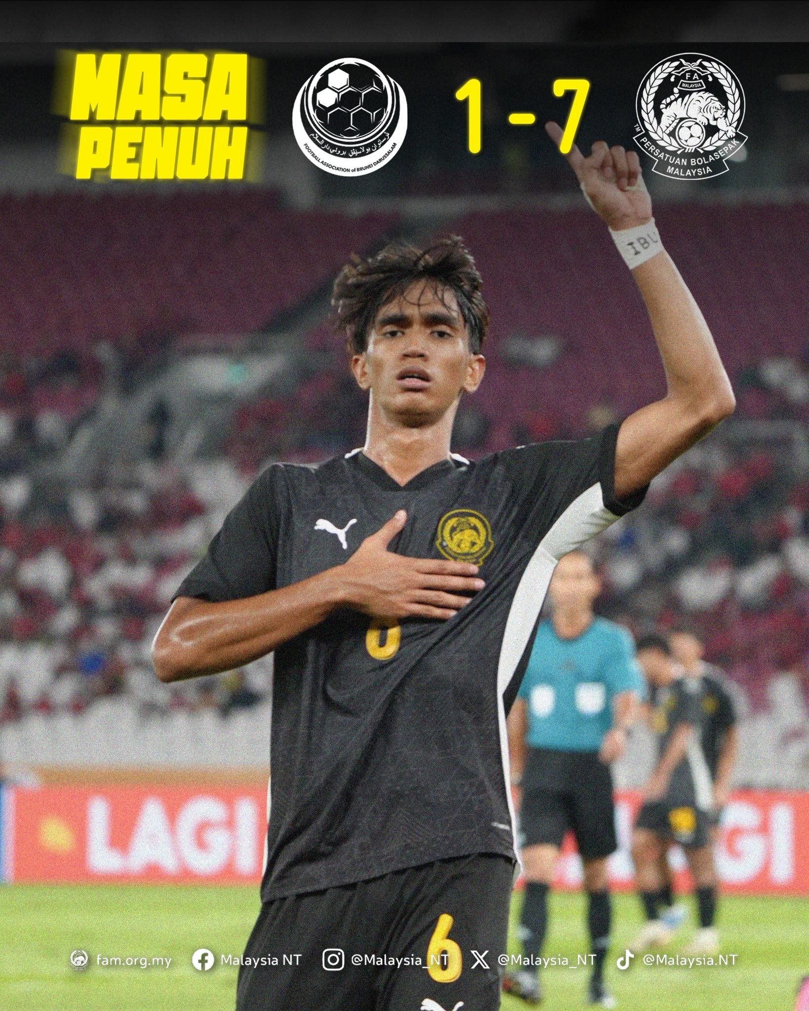 Chung cuộc, U23 Malaysia "đè bẹp" U23 Brunei với tỉ số đậm 7-1 để giành chiến thắng đầu tiên tại Mandiri Cup 2025.