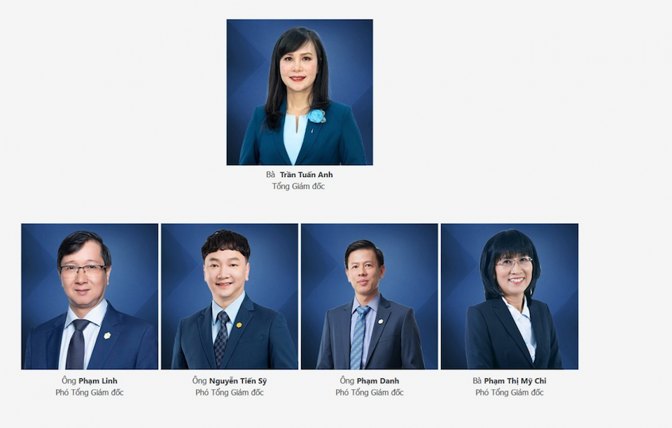 Sau quyết định bổ nhiệm trên, Ban Tổng Giám đốc Vietbank bao gồm 6 thành viên. Trong đó, bà Trần Tuấn Anh làm Tổng Giám đốc ngân hàng cùng với 5 Phó Tổng Giám đốc là ông Phạm Linh, ông Nguyễn Tiến Sỹ, ông Phạm Danh, bà Phạm Thị Mỹ Chi và ông Lê Thanh Quý Ngọc.