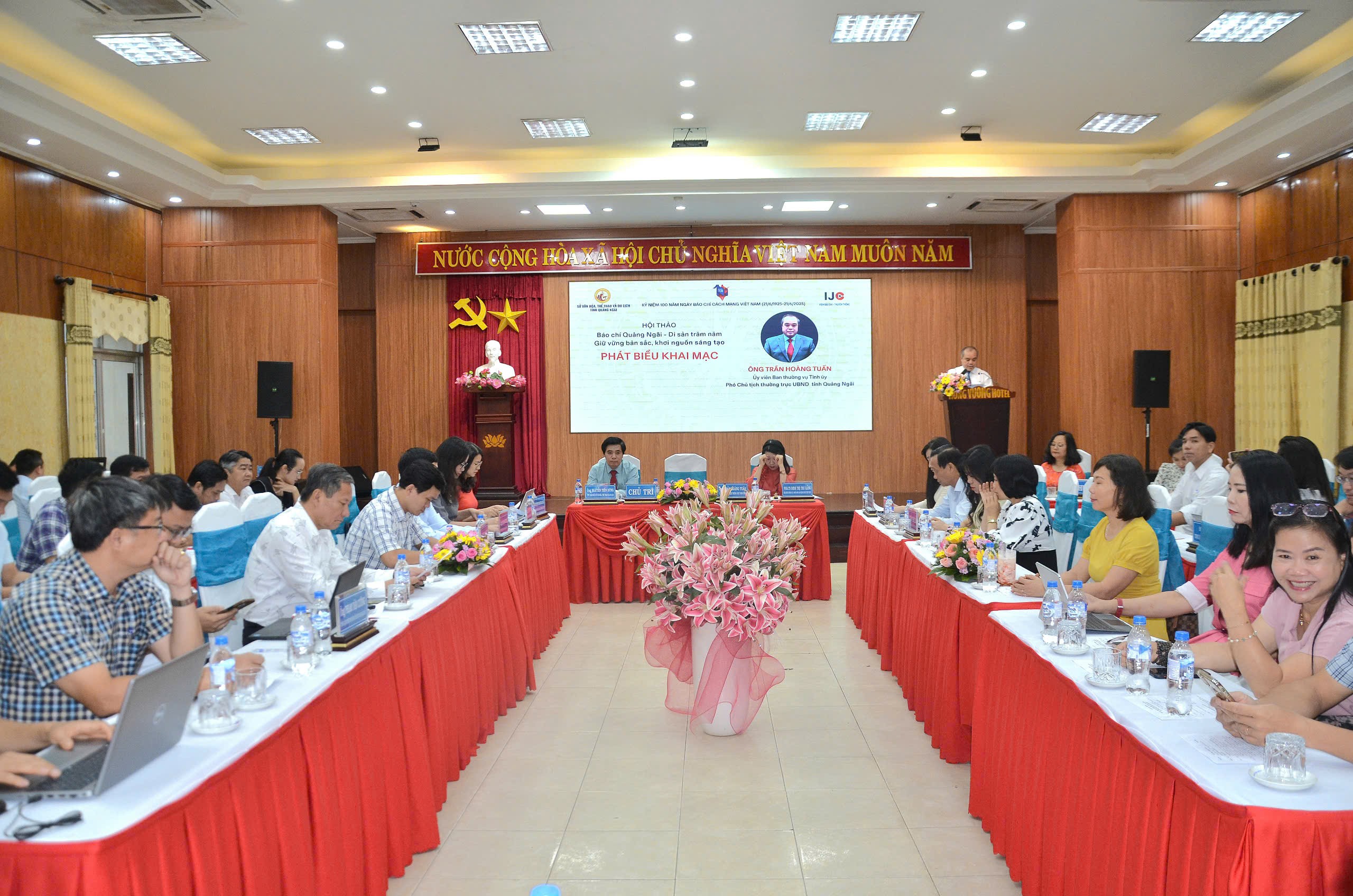 Phát biểu khai mạc hội thảo, Phó Chủ tịch Thường trực UBND tỉnh Quảng Ngãi Trần Hoàng Tuấn cho biết, kể từ khi tờ “Dân Cày” ra đời tại Quảng Ngãi vào năm 1927, báo chí tỉnh nhà đã đồng hành cùng dân tộc qua các giai đoạn đấu tranh giành độc lập và xây dựng đất nước. Trong kháng chiến, những tờ báo như "Đoàn Văn", “Chiến Sĩ" là tiếng nói của lòng dân là ngọn đuốc thắp sáng niềm tin chiến thắng. Bước vào thời kỳ hòa bình phát triển, báo chí tiếp tục đóng vai trò quan trọng trong việc phản ánh chân thực đời sống, cổ vũ công cuộc đổi mới và phát triển kinh tế - xã hội.
