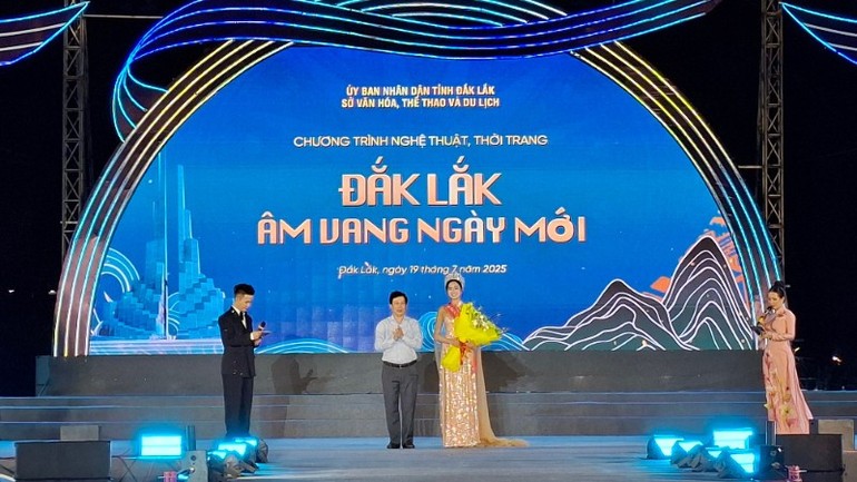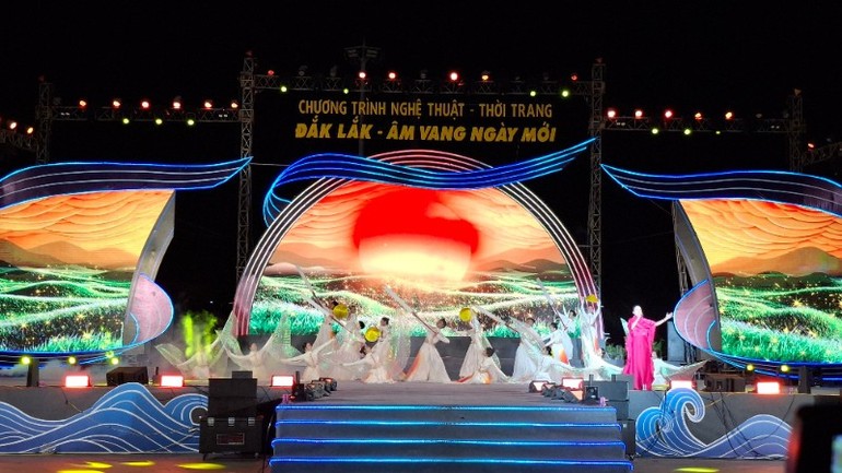 Nghệ thuật-thời trang “Đắk Lắk - Âm vang ngày mới” ca ngợi vẻ đẹp của biển cả và đại ngàn Tây Nguyên, sự giao hòa của biển và núi rừng, chung tay xây dựng quê hương ngày càng giàu đẹp, khát vọng vươn lên bước vào kỷ nguyên mới - kỷ nguyên vươn mình của dân tộc, kết hợp trình diễn các bộ sưu tập thời trang.