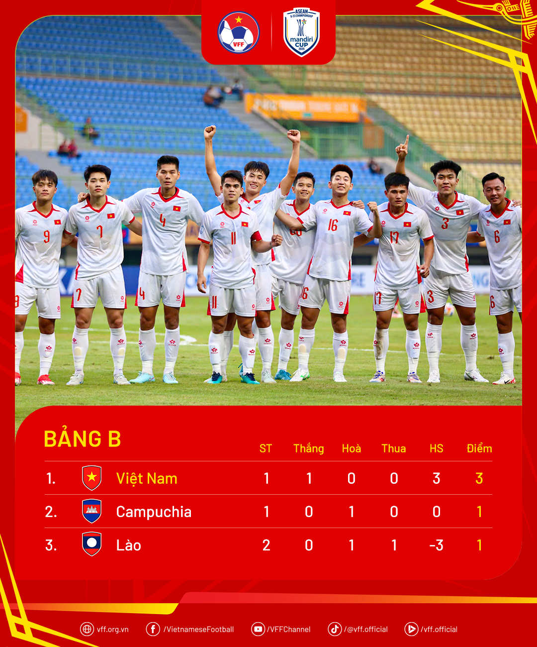 Với chiến thắng đầu tiên tại Mandiri Cup 2025, đoàn quân của HLV Kim Sang Sik vươn lên dẫn đầu Bảng B với 3 điểm sau 1 trận thắng. Trong khi đó, U23 Lào chính thức nói lời chia tay giải đấu năm nay với 1 điểm sau 2 trận đã đấu.