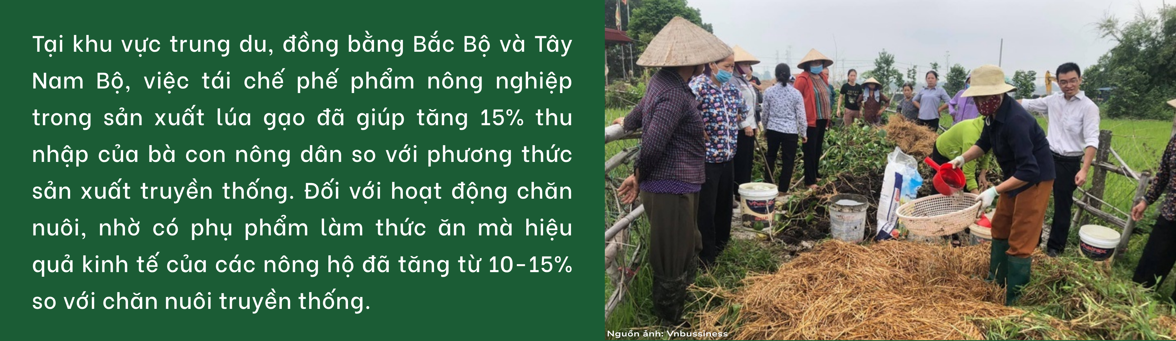 Tuy nhiên, cũng theo số liệu của Bộ Nông nghiệp và Môi trường, chỉ có khoảng 10-35% phụ phẩm nông nghiệp được tái chế. Với những lợi ích to lớn, việc đầu tư cho hoạt động tái chế phụ phẩm nông nghiệp sẽ trở thành động lực để thúc đẩy ngành nông nghiệp phát triển theo hướng bền vững.