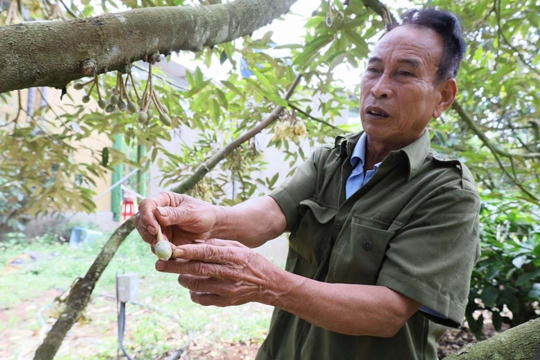 Gia đình ông Hướng Viết Thời - một nông hộ tại xã Ea Kênh (huyện Krông Pắc) kỳ vọng vườn sầu riêng 2 ha sẽ cho sản lượng gấp đôi so với 7 tấn thu bói năm ngoái. Thế nhưng, thời tiết năm nay lại diễn ra thất thường với nhiều trận mưa trái mùa đúng lúc "siết" nước nuôi hoa khiến ông không khỏi lo lắng.